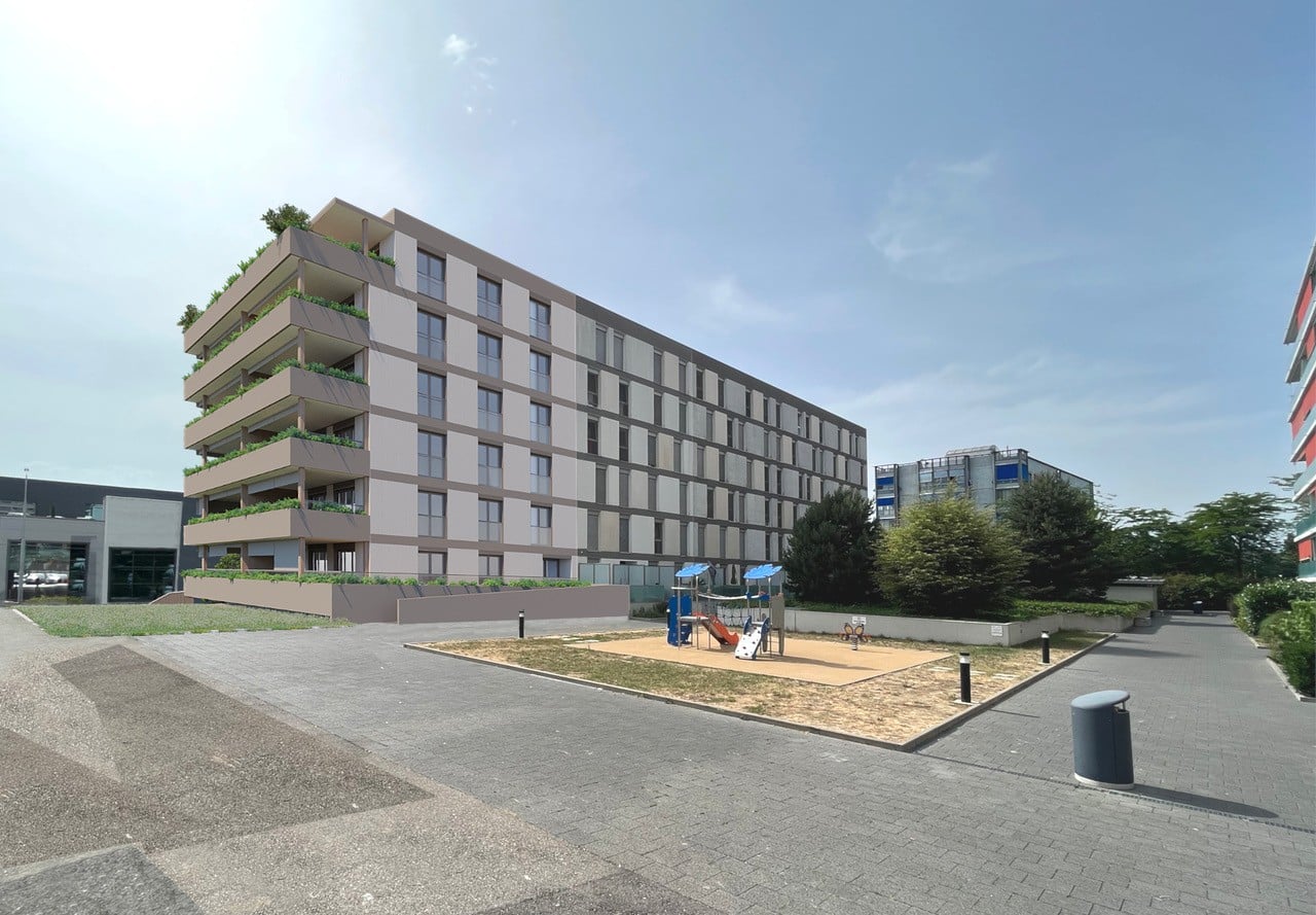 Situé sur le plateau de Saint-Georges au Petit-Lancy, cet immeuble en PPE se composera de 12 appartements (3 à 4 pièces) et une arcade commerciale répartis sur 7 niveaux hors-sol.